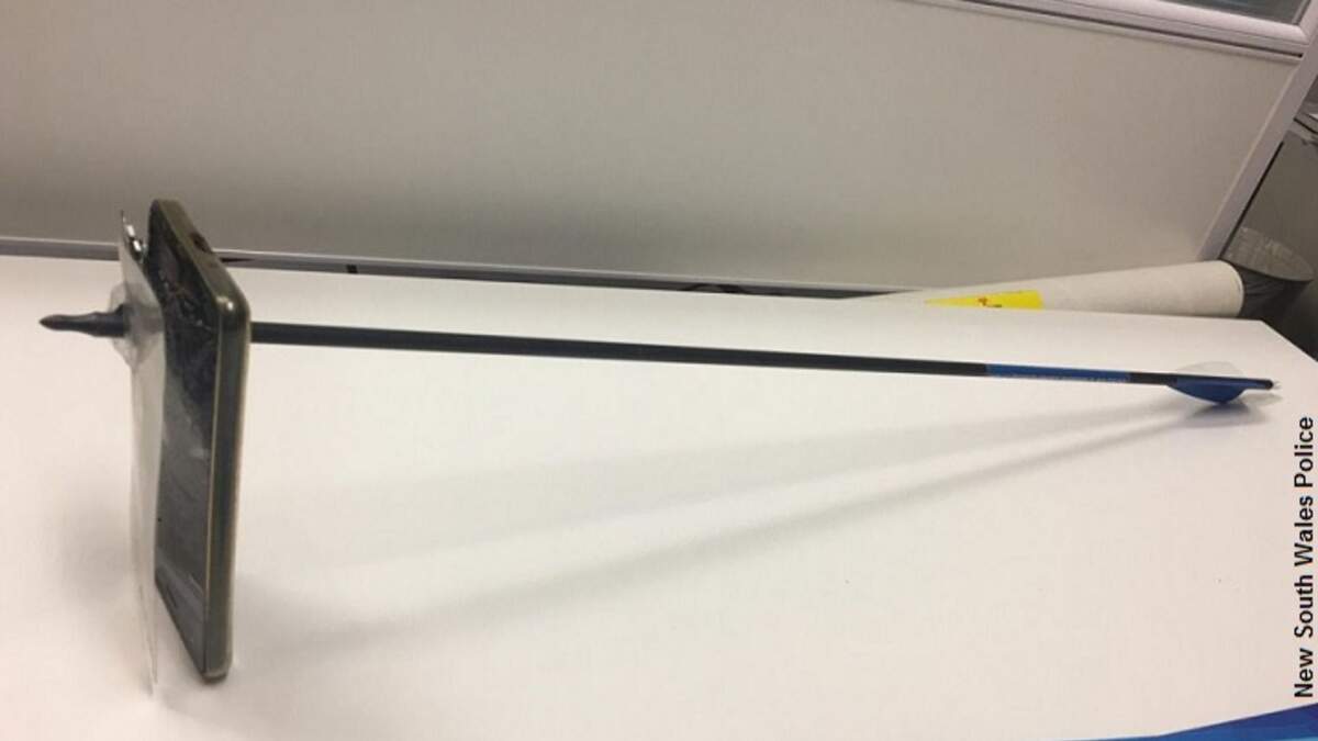An Australian man narrowly escaped serious injury and possibly even death when his cell phone stopped an arrow that was shot at him by an attacker. The bizarre incident reportedly took place in the village of Nimbin yesterday when an unnamed individual arrived home and saw an acquaintance waiting for him in his driveway. Alas, it would appear that this was not a friendly visit as the interloper wielded a bow and arrow.